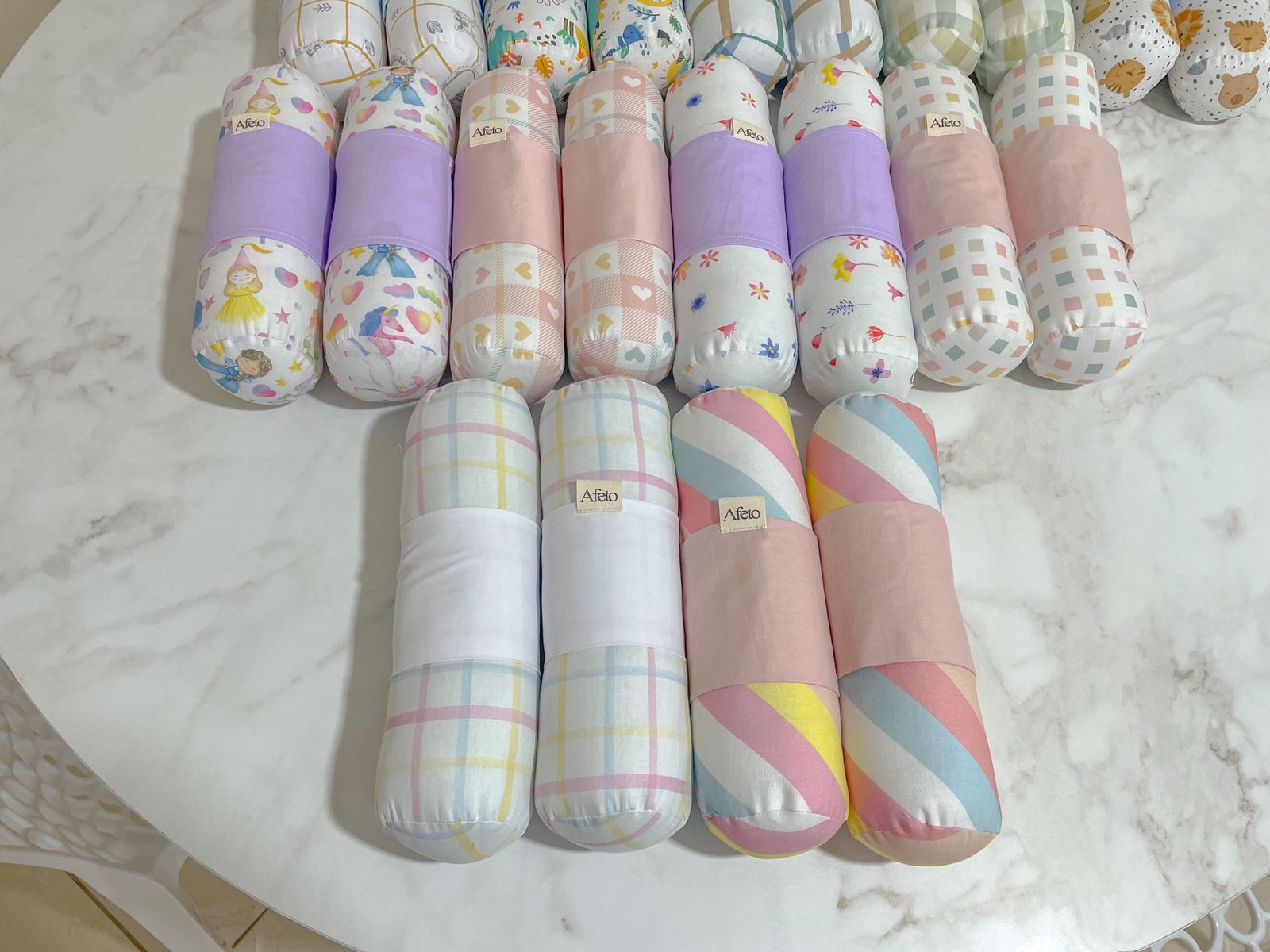 | Cor | Arco-íris, Azul, Azul Marinho, Balões, Flores Coloridas, Lilás, Rosa, Safari, Xadrez verde, Xadrez Rosa, Verde, Princesas, Quadriculado Rosa, Dino |